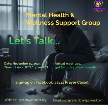 Why is Mental Illness so hard to talk about? Breaking the silence is a must! Breaking down the barriers of stigma is a start. Make plans to join us and let us know if you plan to be with us thru the Facebook event invite, or email us at jayzzprayercloset@gmail.com. ~Jayzz Prayer Closet